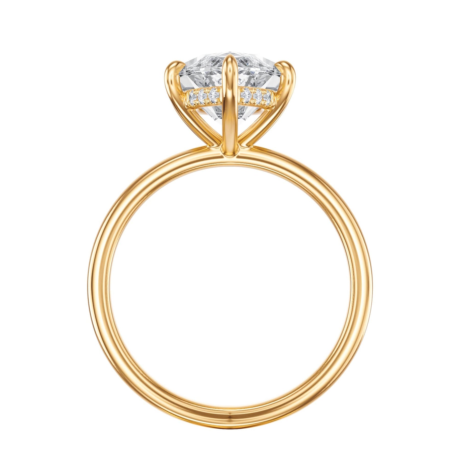 This ring is ideal for someone who loves bold, elongated shapes with refined detailing. The hidden halo adds depth without distracting from the diamond’s form. It pairs beautifully with a simple band or stands alone as a statement piece.